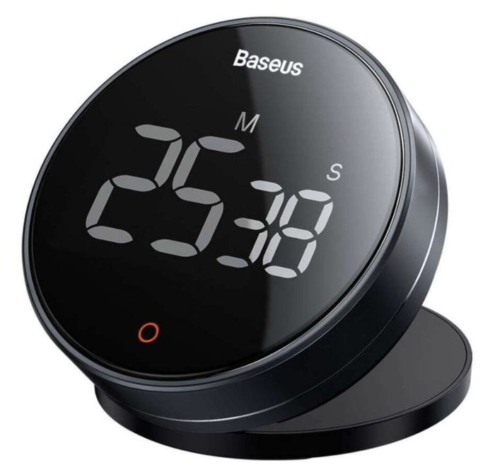 Baseus Heyo Rotation — это стильный и удобный помощник для кухни и не только. Этот таймер с минималистичным дизайном легко настраивается одним движением, а большой цифровой дисплей позволяет видеть время с любого угла. Идеален для отсчёта времени при готовке, занятиях спортом или работе.