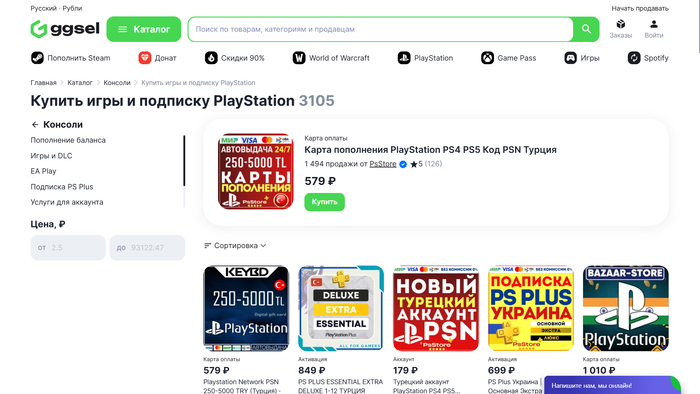 Для подписок вроде PS Plus предусмотрены отдельные категории с фильтрами по региону и сроку действия.