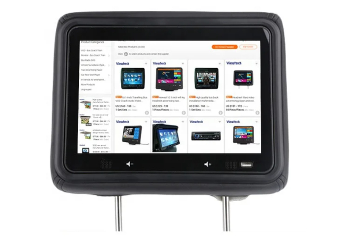 Сенсорный FullHD-экран для установки на подголовник авто. Идеален для рекламы, инфо-роликов или развлекательного контента.