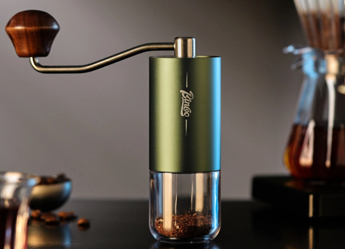 Компактная кофемолка с прозрачным контейнером, где видно каждый оборот жерновов. Металлический корпус и керамический механизм обеспечивают точный помол.