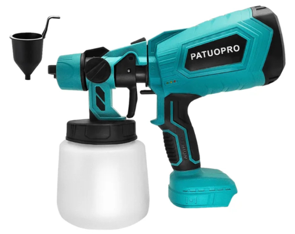 Универсальный электрический краскопульт для быстрой и ровной покраски. Работает без шлангов и компрессоров. Бак на 1000 мл подходит для стен, мебели и заборов.
