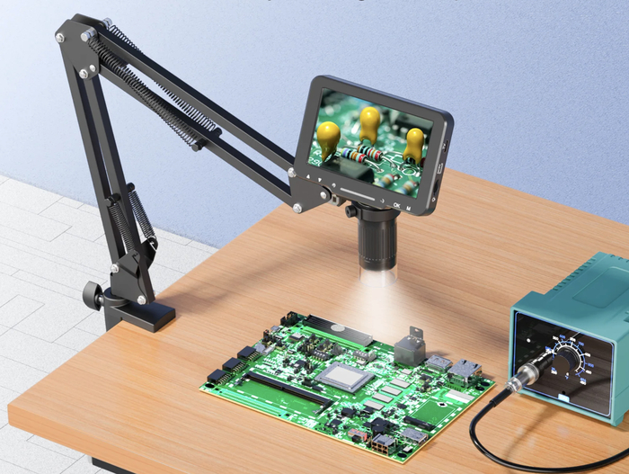Портативный микроскоп предназначен для осмотра печатных плат, мелких компонентов и растений. Увеличение до 1000× помогает рассмотреть детали, недоступные невооружённому глазу.
