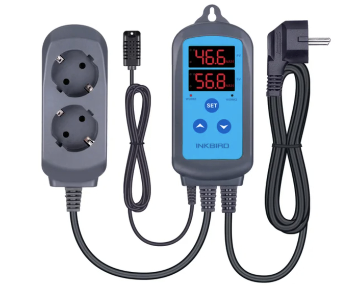 Контроллер INKBIRD IHC-200 предназначен для автоматического управления увлажнителями и осушителями. Подключение по Wi-Fi позволяет следить за показателями со смартфона и настраивать нужные параметры удалённо.