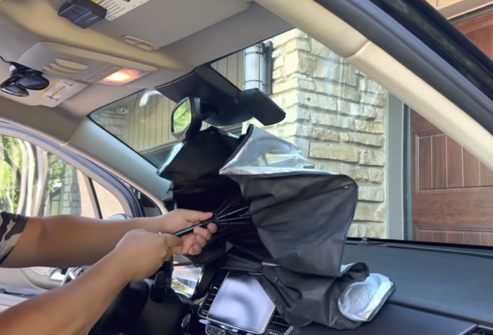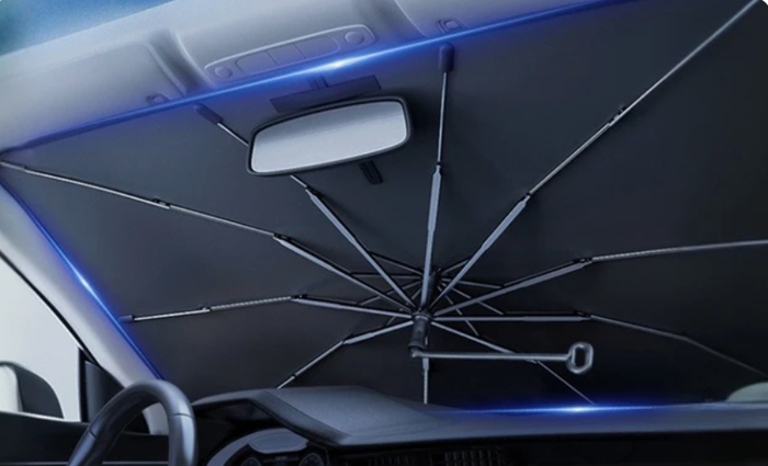 В жаркий день внутри остаётся заметно прохладнее, а обивка и пластиковые элементы не выгорают. Для автомобилей с удлиненной приборной панелью, предусмотрена складная ручка. Каркас выполнен из гибких рёбер, которые легко принимают нужную форму и не ломаются при изгибе.