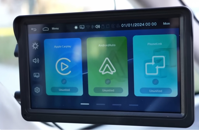 Дополнительный семидюймовый экран подключается через прикуриватель и не требует сложной установки. Он совместим с любым автомобилем и сразу открывает доступ к функциям CarPlay и Android Auto без проводов. Как только водитель садится в машину, смартфон синхронизируется автоматически, выводя карты, звонки и музыку на экран.