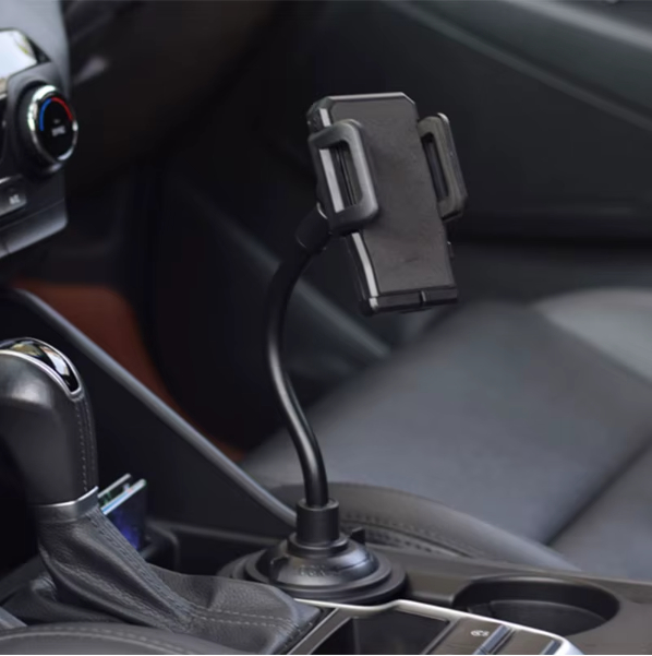 Удобное устройство, которое крепится прямо в подстаканнике автомобиля. Достаточно повернуть фиксирующее кольцо, чтобы держатель надёжно закрепился внутри.