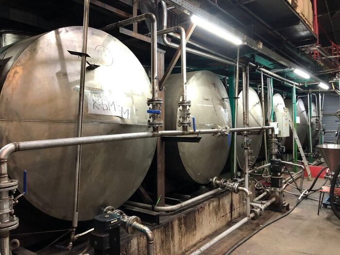 В этих баках — добавка очень высокой концентрации. Чтобы довести ее до товарного состояния, нужна качественная дистиллированная вода и пастеризация