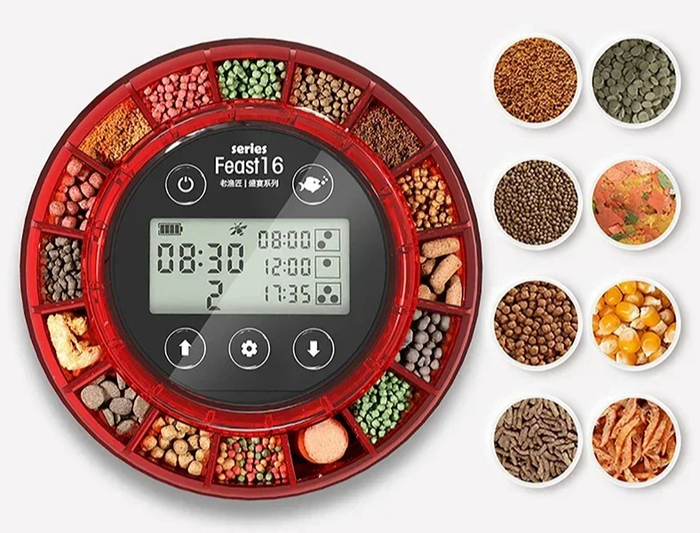 Кормушка распределяет сухой корм строго по расписанию, поддерживая стабильный режим питания аквариумных рыб. Регулировка порции позволяет подстраивать количество корма под размер аквариума и виды рыб. Контейнер защищён от влаги, что не даёт корму слёживаться и образовывать комки.