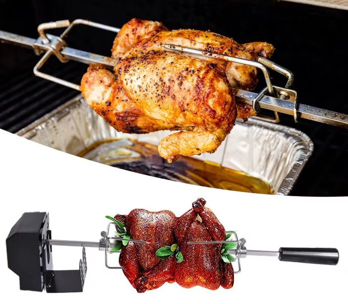 Автоматический механизм вращения равномерно прокручивает продукт, позволяя прожарить каждую сторону без риска пересушивания.