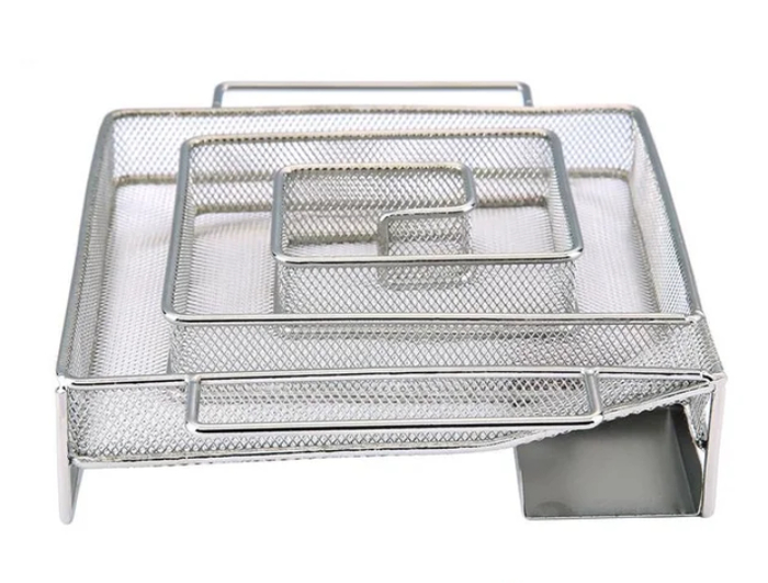 Сверху устанавливается решётка, на которую выкладываются продукты — мясо, рыба, сыр или овощи. Процесс копчения проходит равномерно и безопасно, без открытого огня. Дымогенератор подходит как для домашнего использования, так и для дачи, позволяя готовить ароматные блюда без сложного оборудования.
