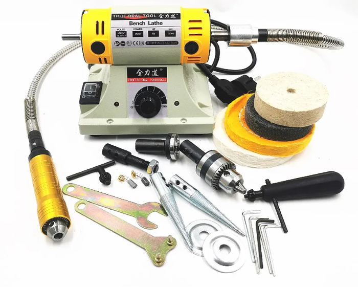 Станок оснащается набором насадок и кругов: войлочные и фетровые диски подходят для полировки ювелирных изделий, камня и металла, абразивные диски применяются для снятия неровностей и финишной обработки древесины. Конусные насадки позволяют работать с отверстиями и труднодоступными местами.