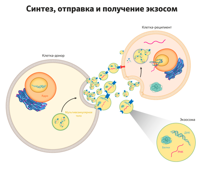 В везикулах передаются белки, РНК, участки ДНК, липиды и другие молекулы. Это такой межклеточный интернет с множеством функций. Практически все клетки выделяют те или иные виде везикул. Не исключение тут и нейроны головного мозга, которые через внеклеточные везикулы регулируют деятельность других клеток.