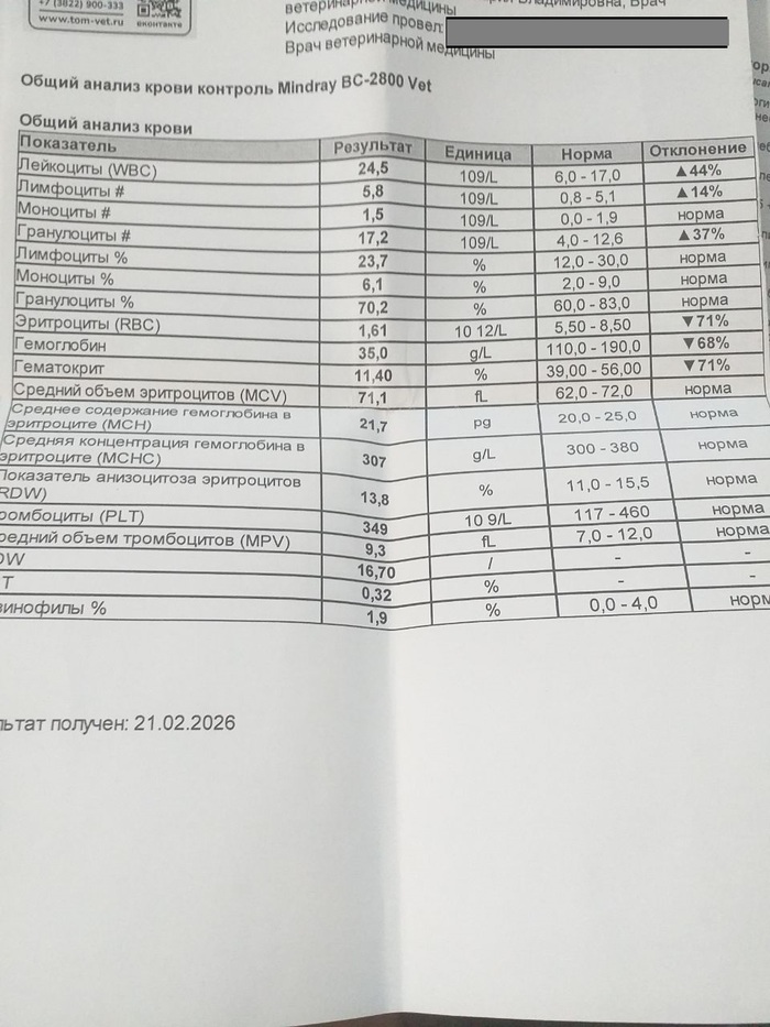 Нужен (завтра(22.02.2026), срочно(?)) донор крови для собаки в Томске, длинношёрстое чихуа-хуа-хуа весом 2кг, 10* месяцев, по кличке Белла. У неё уровень гематокрита ниже 15.