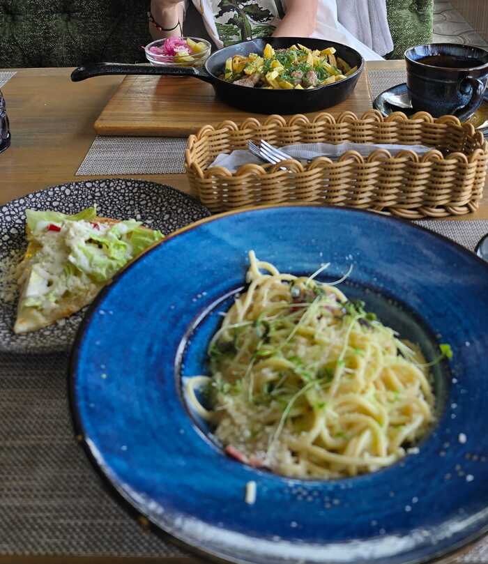 Первым делом после дороги пообедали, место прям рекомендую, «Здрасьте, счастье», здесь большой выбор, быстрая (адекватная блюду) подача, приятный сервис и ремонт, нормальные цены.