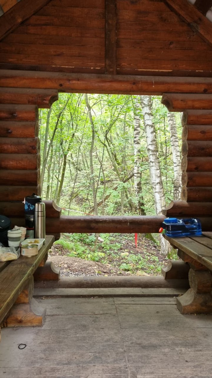 У нас было около часа свободного времени, расположились в беседке со своей горелкой, тушенкой и бпшкой, подкрепились и в назначенное время нас пустили за шлагбаум вместе с остальными, кто на это же время. Еще примерно полчаса нужно ехать по лесу до места начала экскурсии.