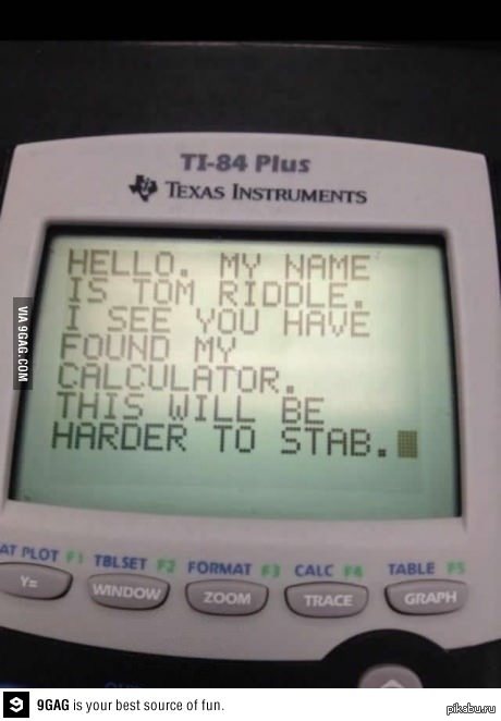 Перевод: Привет, мое имя Том Рэддл. Я вижу вы нашли мой калькулятор. Его будет трудней пронзить.