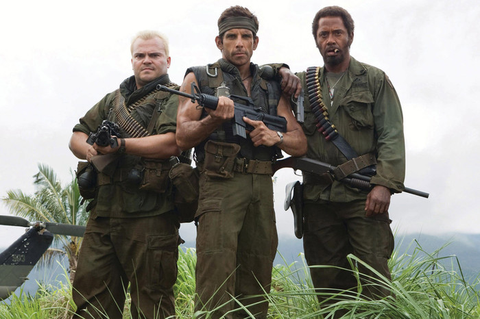 Роберт Дауни мл.,Бен Стиллер и Джек Блэк на съёмочной площадке фильма «Солдаты неудачи» (2008 год).