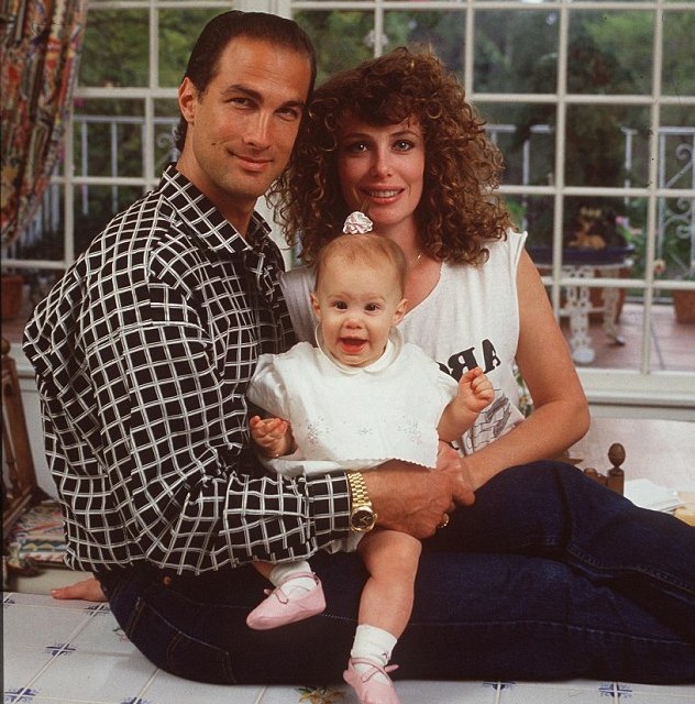 Стивен Сигал и Келли Леброк со своей дочерью Аннализой (1987 год).(Стивен сигал был женат на Келли с 1987 года по 1994 год,также в браке у них родились еще две дочки Доминика и Аррису Сигал,а в общей сложности от всех браков у Стивена семь детей, молодец.