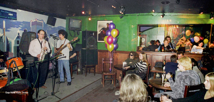 Люди хорошо проводят время в баре «New York Times». Новосибирск, 1998 год.