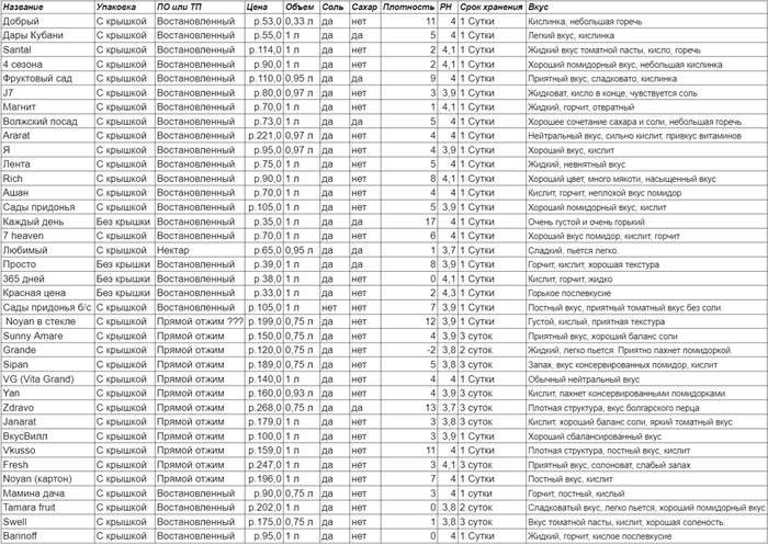 Тут можно посмотреть про томатные соки прямого отжима