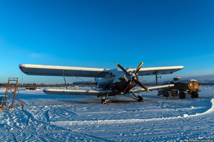 05. В аэропорту Томтора, ближайшем к Оймякону, стоят Ан-2, но они зимой не летают.