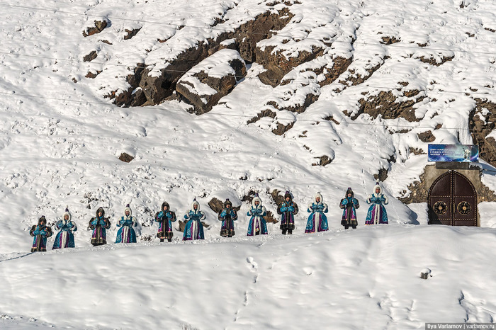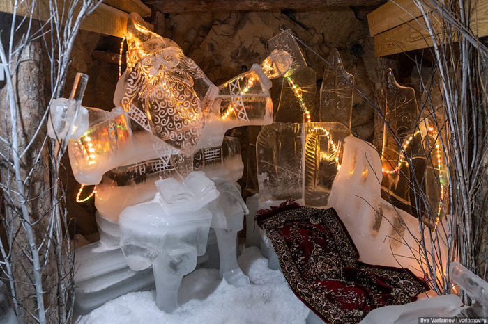 21. Внутри есть ледяные скульптуры. Я так понял, это Дед Мороз, который раз в год приезжает в гости к Чысхаану.