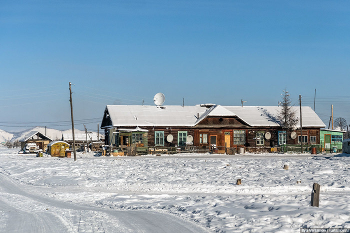 Действительно ли в Оймяконе было -71,2 градуса или нет, не так важно. Тут адски холодно даже весной. Когда я приехал днём, термометр показывал -53, хотя в этот момент в Якутске уже без шапок народ ходил. Ещё в Оймяконе очень контрастная температура. То есть если ночью -50, то днём на солнышке может быть -30! Как вам такие скачки?
