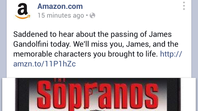 Чем Amazon прогневала интернет? В сообщении о гибели актера она привела в самом конце ссылку на диски со всеми сезонами «Сопрано». Отличный маркетинговый ход, ничего не скажешь. Не исключено, конечно, что кто-то в компании просто недосмотрел за излишне инициативными сотрудниками, которые следят за размещением в соц сетях. В любом случае, Amazon после бурной критики в свой адрес быстро удалила ссылку. Это, конечно, хорошо, но осадок остался.