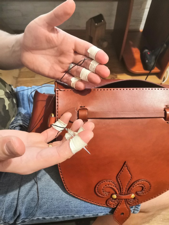Сборка была весьма интересная и ввиду плотности и толщины материала не обошлось без травм 😁, пришлось изголяться, чтобы остальные пальцы были целы от нити.