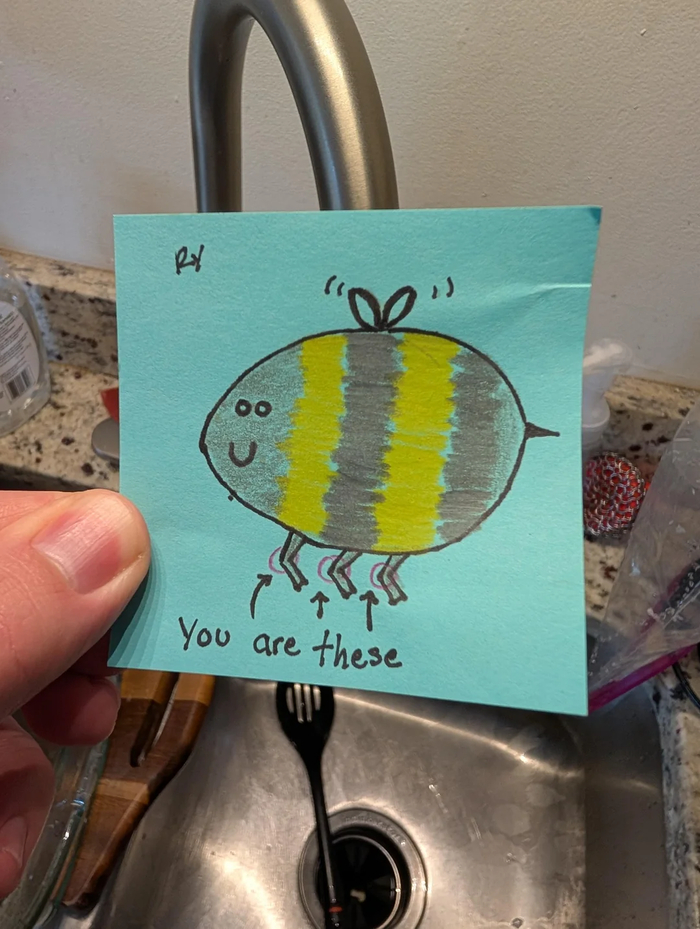 (стрелочки указывают на колени пчелы. Английская идиома «The bee's knees» (колени пчелы) означает «просто класс», «лучший из лучших»).