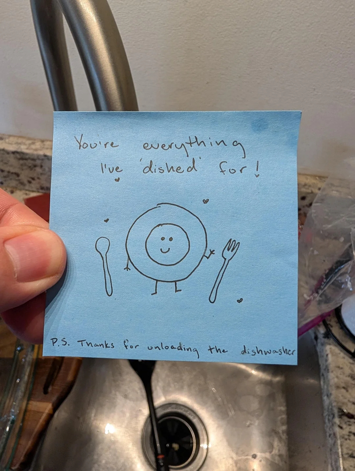 P.S. Спасибо, что разгрузил посудомойку.