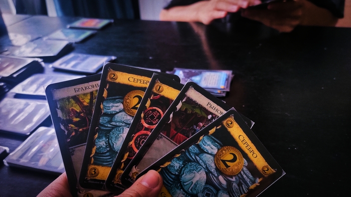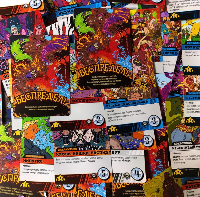 Суть игры – набрать как можно больше очков. По сути у вас есть колода и рынок. Рынок состоит из колоды карт, пять из которых всегда лежат для покупки. Если игрок купил карту с рынка, он пополняется. Плюс есть колода легенд (это самые сильные карты игры) и карты шальной магии (недорогие, но довольно эффективные карты). На каждой карте есть своё количество победных очков. А если вас убьют, у вас будет наоборот минус к победным очкам. Но потом вы возродитесь. Игра завершается, когда или заканчивается основная колода рынка, или колода легенд, или когда игроки умрут определенное количество раз.
