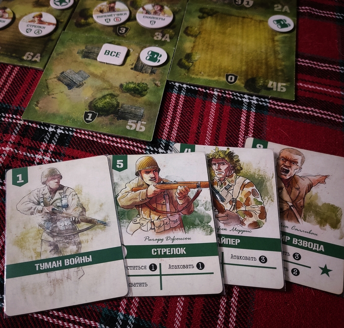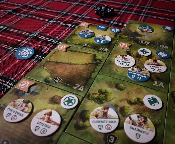 И вот как раз карты здесь нужны, чтобы управлять войсками. Сыграть карту отряда чтобы атаковать или передвинуться. Все отряды уникальны. Разведчики расчищают путь, чтобы ходили другие войска. У пулеметчиков высокий шанс попадания, а захватывать точки могут только стрелки. И вот этим разнообразием, атмосферой, несмотря на рандом, наличием тактик и затянуло меня в эту игру. Хотя да, из-за того, что здесь очень много зависит от карт и от кубика – всего лишь 5 место.
