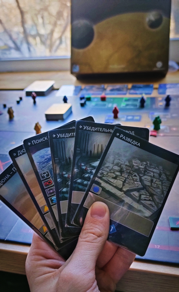 И ещё я считаю, что эта игра строго на четверых. Здесь очень большую роль играет то, куда вы отправляете своих рабочих. И если кто-то занял клетку, второй уже не может на неё встать. И вот вчетвером чувствуется теснота, есть конфликтоность. При меньшем количестве игроков – не то. Но несмотря на проблемы, Дюна – это отличное евро, которое может принести удовольствие.