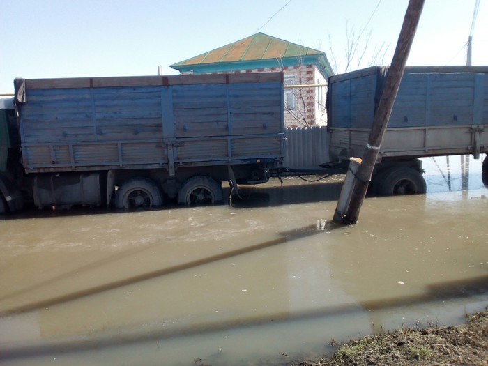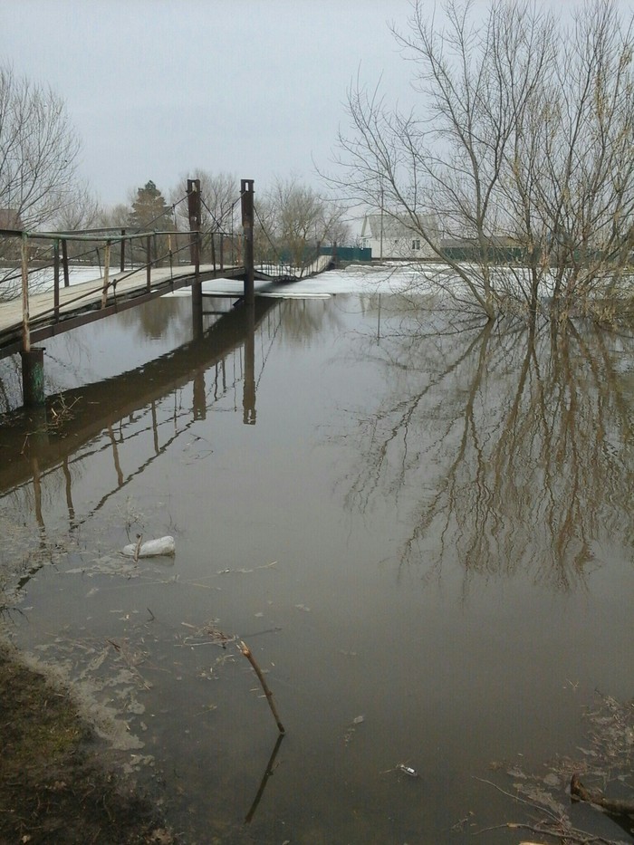 Сегодня разорвало навесной мост через речушку. В обычное время - гусю по колено, но когда Саратов сбрасывает воду...