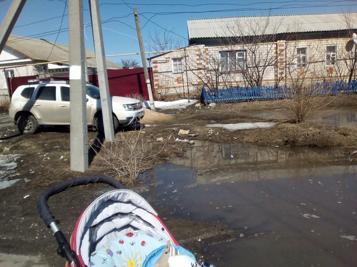 многие просто стоят на улице перед дворами, некоторые дома находятся чуть ниже асфальта, дворы залиты полностью, фотографировать не стала, как-то неловко все же.