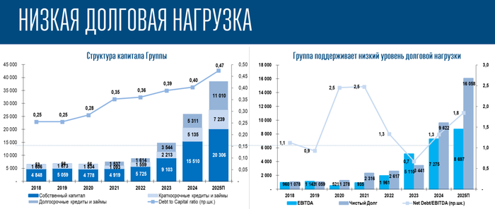 Выручка: 73,6₽ млрд (+6,1% г/г), EBITDA: 8,7₽ млрд (+19,8% г/г), Чистая прибыль: 4,8₽ млрд (-25% г/г). Чистый долг/EBITDA на уровне 1,8х, в 2026 г. планируют сократить уровень долговой нагрузки за счёт увеличения EBITDA/гашения долга и выйти на 1,5х.