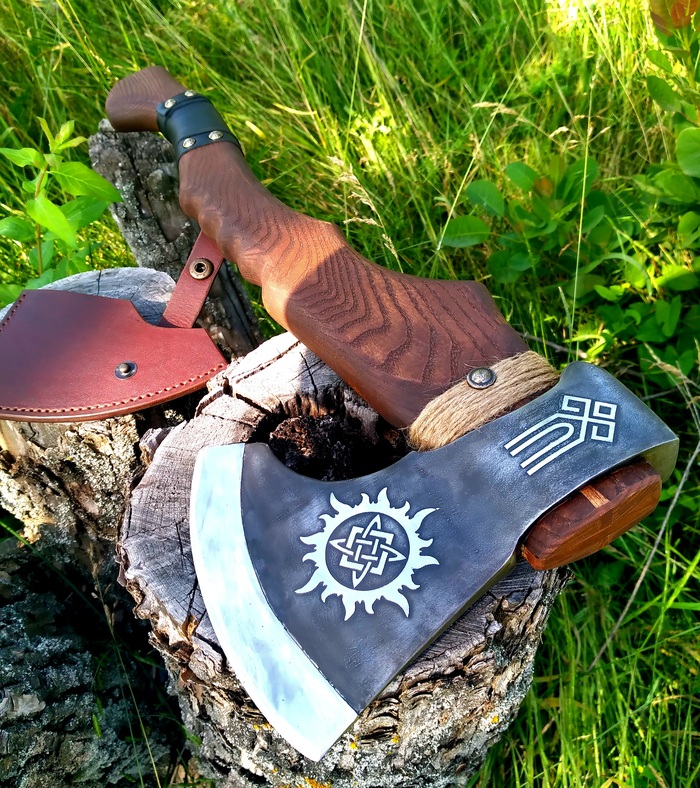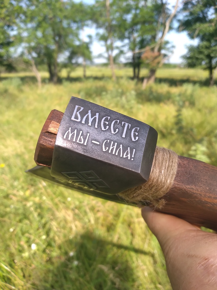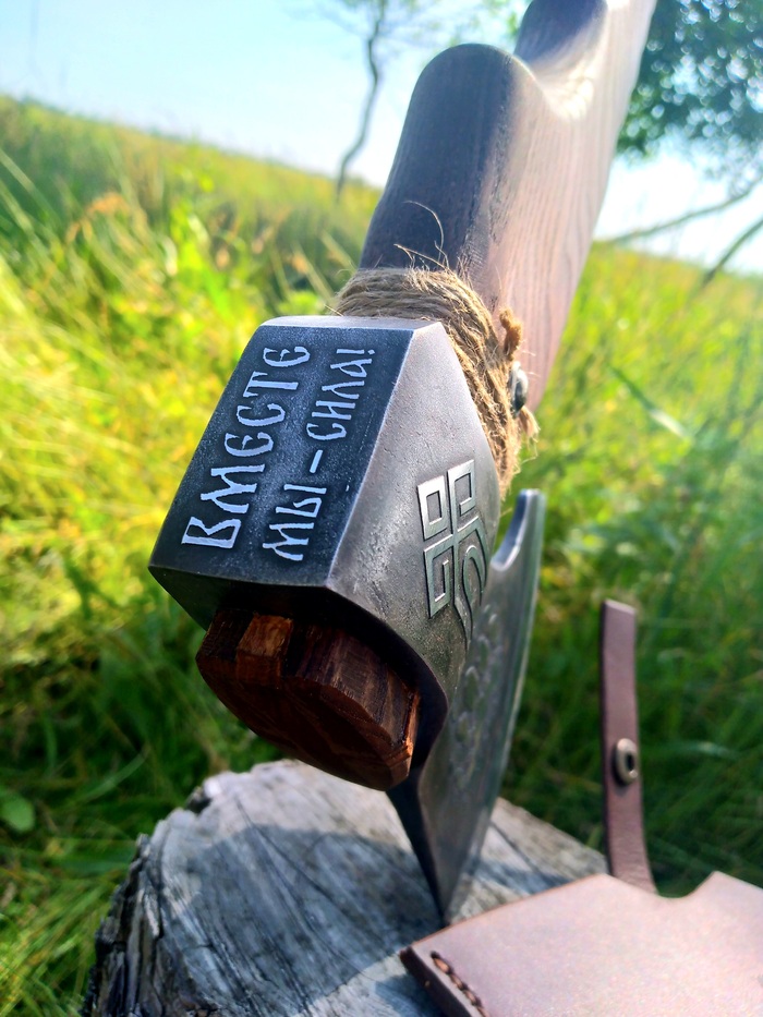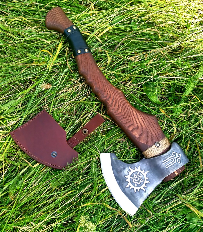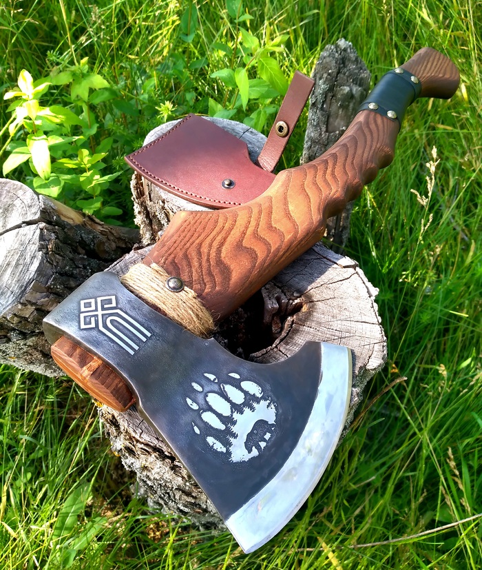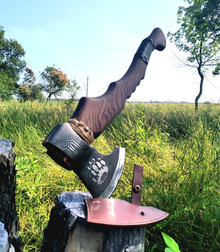 Буквально вчера закончил делать этот топор, и сегодня ездили на природу чтобы сделать несколько фото.