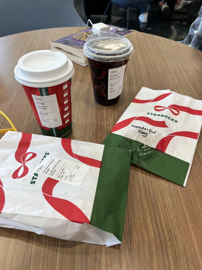 5. Рейс задержали на 3 часа, поэтому пилот обошел всех, чтобы принять заказы из Starbucks, а затем принес нам около 40 напитков и 50 порций еды 🥰