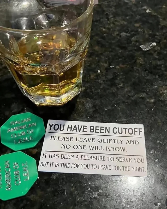 Это так называемая «карточка отказа» (cutoff card). Бармены используют их, чтобы вежливо сообщить сильно выпившему клиенту, что ему больше не продадут алкоголь, избегая при этом громких споров и скандалов перед другими посетителями.