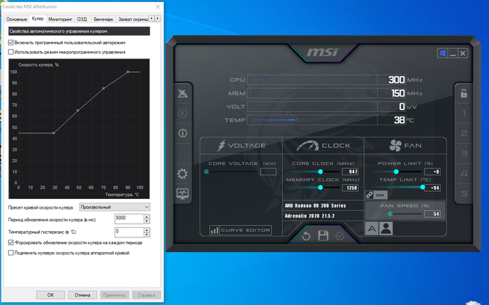Приехал с работы, достал старый вентилятор, подтащил к видеокарте r9 290 и прокатил тест furmark. температура за 3 мин 85 градусов (в прошлый раз была 92). Вывод напрашивается следующий: недостаточная продувка. Так же настроил работу кулера, как советовали. Температура в обычном режиме упала с 40-42 до 35-38.