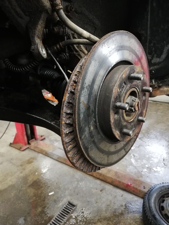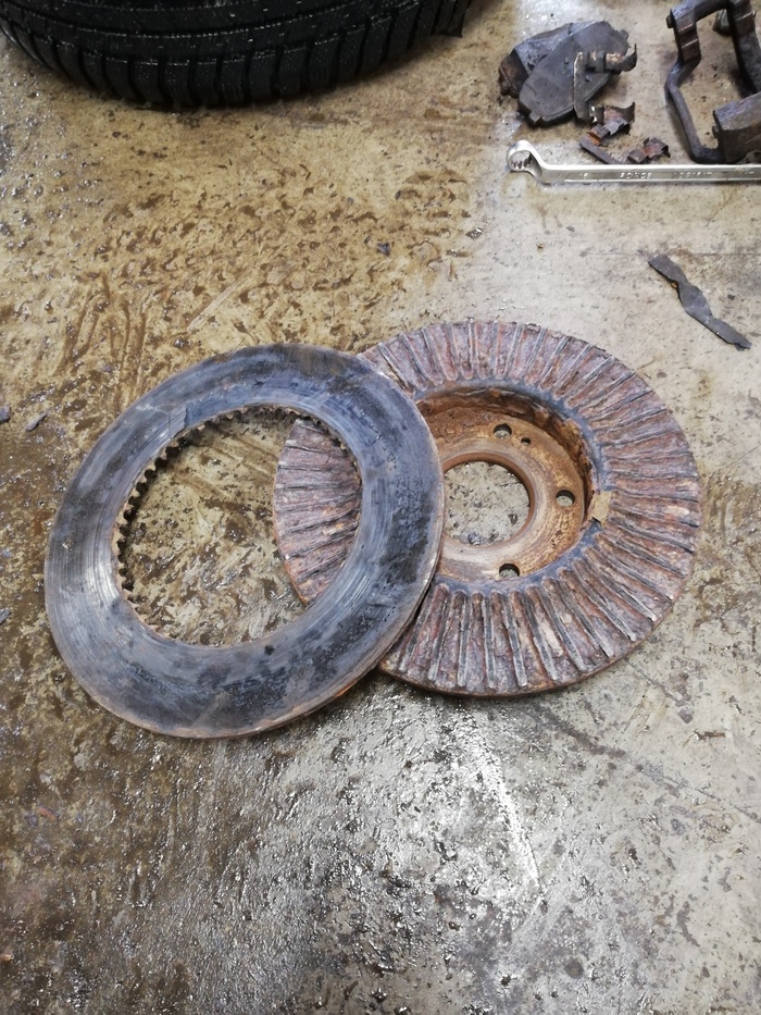 До этого пытался снять с помощью молотка и вд 40, не помогло, потом вход пошёл более мощный молот, тоже все тщетно, диск немного стал откалываться. Спец съёмника у меня нет, соседи по гаражу предлагали болгаркой пильнуть, но проблему решил с болт).