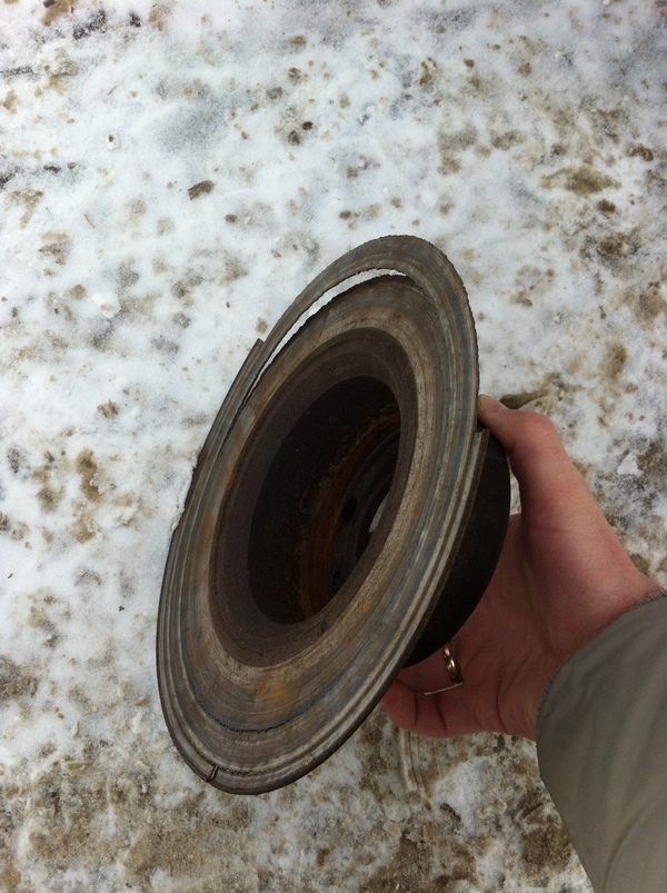 Не так давно на сервис машинка обратилась с обычным стуком,результат на лицо-тормозную часть диска просто оторвало от той которая висит на ступице(толщина металла в месте разрыва от 3 мм и более @_@).Будьте внимательны и следите за своим авто,иначе может быть и хуже :)
