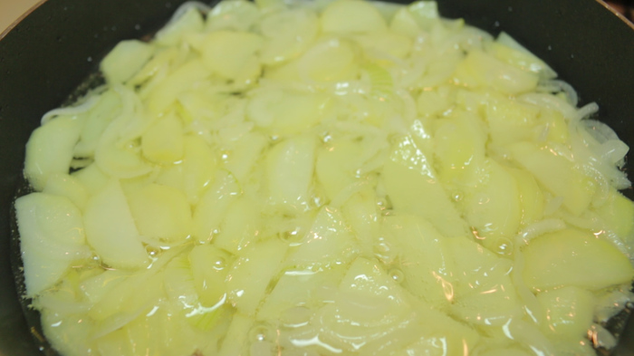 Для простоты показа не стал разводить костер, а достал из кладовки походную газовую плитку и старую сковороду.