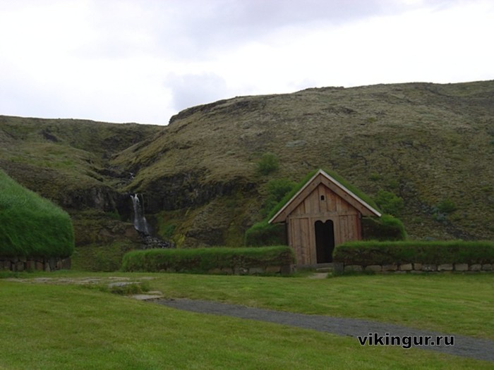 В старину, церкви в Исландии тоже строили с использованием подобных технологий. Стены и крыши церквей обкладывали дёрном и смотрятся такие церквушки необычайно колоритно, особенно летом, в обрамлении сочной, зелёной травы. Например, церковь в местечке Þjórsárdalur Сьёурсаурдалур, находящемся недалеко от грозного исландского вулкана Хекла: