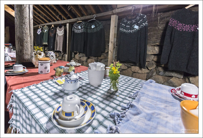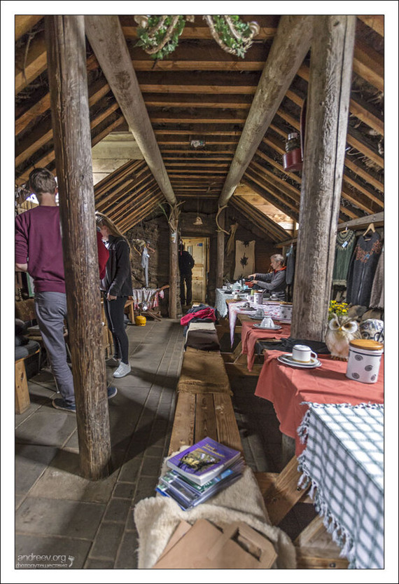 Одно или несколько окон землянки выходили на южную и юго-западную сторону, чтобы максимально использовать дневной и солнечный свет. Хлев-землянку для домашних животных, более-менее состоятельные исландцы обычно строили на некотором расстоянии от жилого дома. И внешне хлев и дом мало отличались друг от друга.