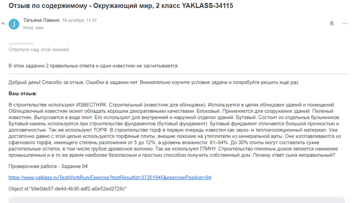 Смотрю еще раз на ответ сына. Причем скрин я прикрепляла дополнительно. Там выбрано 3 ответа. Причем тут "один известняк не засчитывается"? Пересылаю еще раз. Разделила на параграфы, чтобы удобнее было читать. Вот я наивная... Ну ладно.