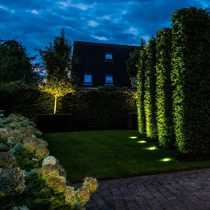 Грунтовые светильники монтируются в грунт и предназначены для освещения тропинок, цветников и зелёных насаждений. Благодаря низкому расположению они обеспечивают мягкий, равномерно распределённый свет, подчеркивающий контуры объектов и создающий ощущение простора.