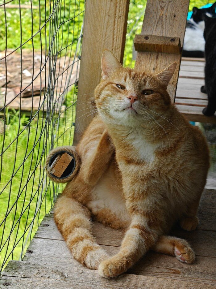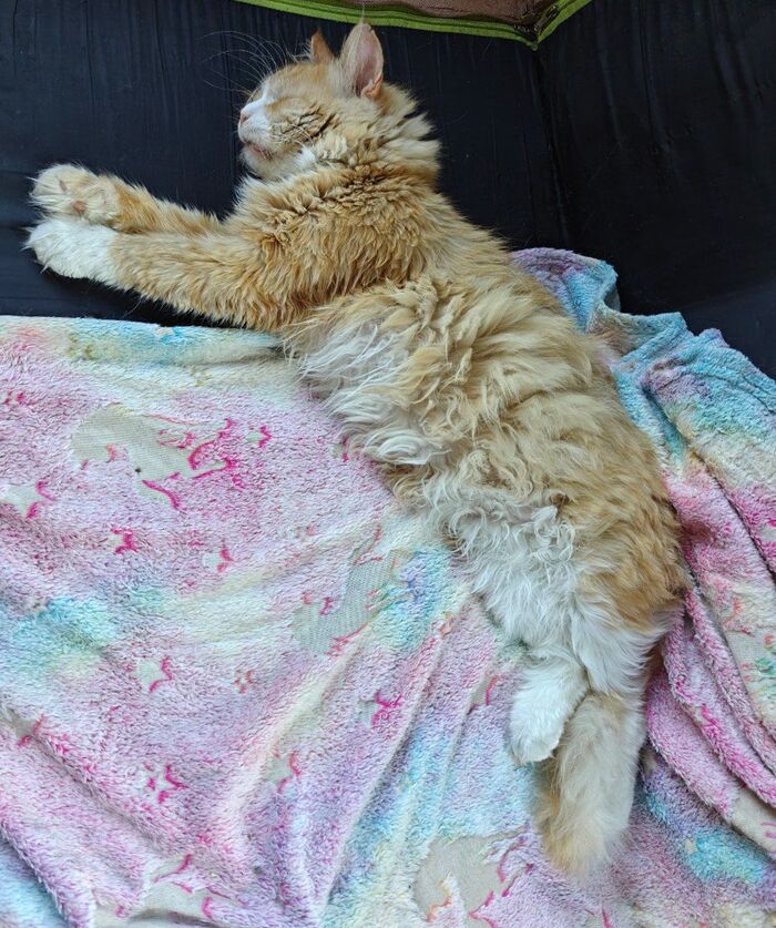 А так у нас все отлично. Коты прекрасно проводят лето. Старики пока держатся, никто не болеет (тттт). Кто не зочнв котовник, тот спит дома.