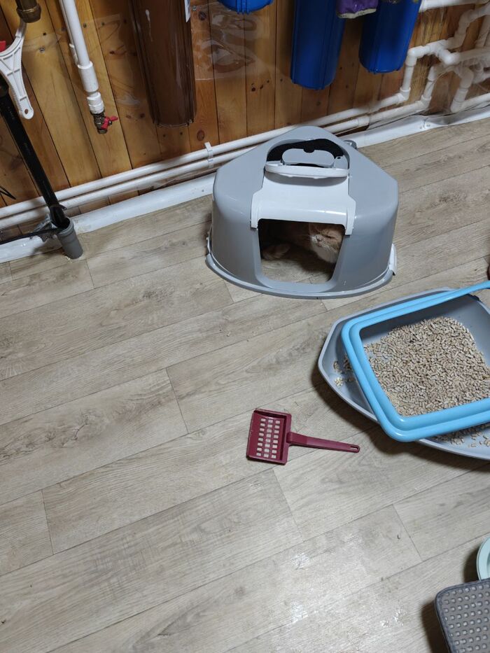 Всем привет от Тимофея с усыпления, который со мной 24 на 7 и пытается залезть мне на ручки, бодаться и делать молочный шаг (ему даже на бензиновый триммер пофиг). А ещё он научился открывать ручку двери и пускать в комнату всю толпу.